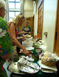 Our Member parties usually consist of a Pot Luck Lunch, Wrapped book exchange, and Open Mic reading by active member/authors. Members only.